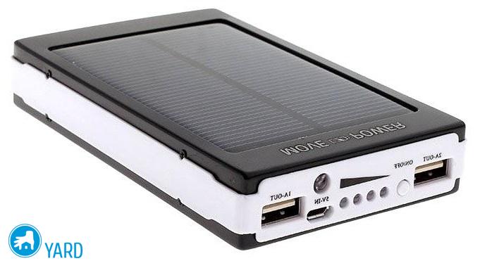 Para elegir una batería externa para un teléfono inteligente, debe prestar atención a este modelo, una batería externa bastante pesada que está diseñada para recargar teléfonos inteligentes y tabletas. En el panel frontal del accesorio hay una batería solar. Pero no debe depender demasiado de él, ya que con su ayuda se compone bastante energía.