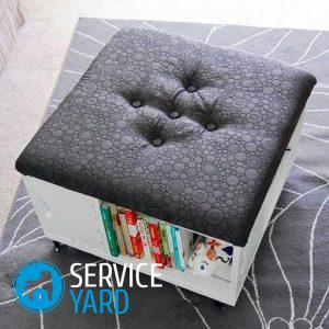 - Otomana de gran tamaño con tapa abatible conviértalo en un armario de zapatos. Coser en un círculo bolsillos en los que ponerse los zapatos. Esta opción es especialmente buena para guardar zapatos de bebé.