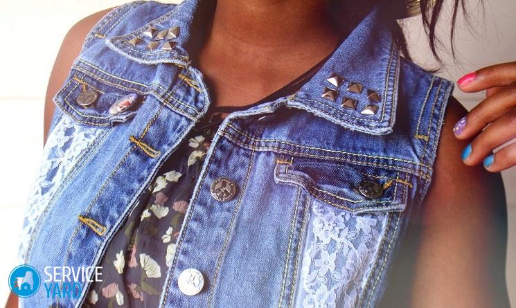 Para llevar a cabo el plan y darle una nueva vida a la vieja chaqueta de jeans, solo necesita rasgarle las mangas y procesar varias costuras. En cuanto a las joyas, todo depende únicamente de su imaginación y preferencias de sabor.