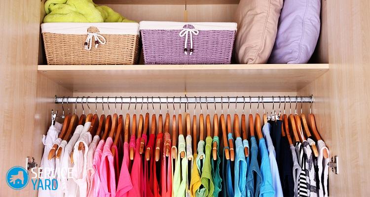 Para evitar daños a la ropa y la aparición de pliegues pronunciados, las prendas como blusas, vestidos, faldas y pantalones deben almacenarse en perchas. Para un uso más conveniente, separe cada categoría de cosas con la ayuda de divisores especiales.