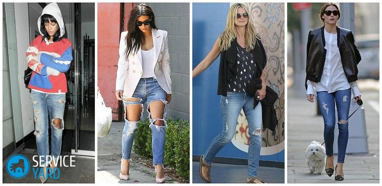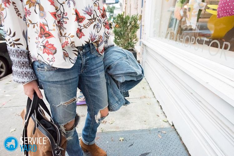 Actualizar los jeans viejos y ponerlos a la moda es posible con la ayuda de agujeros, porque los modelos desgarrados siempre permanecen en tendencia.