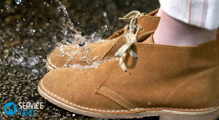 - La gamuza no tolera la humedad y la humedad. Para usar zapatos hechos de este material en clima lluvioso, debe usar un aerosol repelente al agua antes de salir.