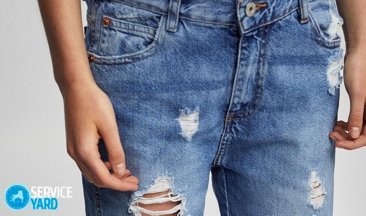 - Si la tela está dañada en la ubicación del remache, primero póngase un parche de mezclilla, cubra completamente el área dañada. Coser el parche manualmente o en una máquina de escribir varias veces. Después de eso, instale el remache en la pierna.
