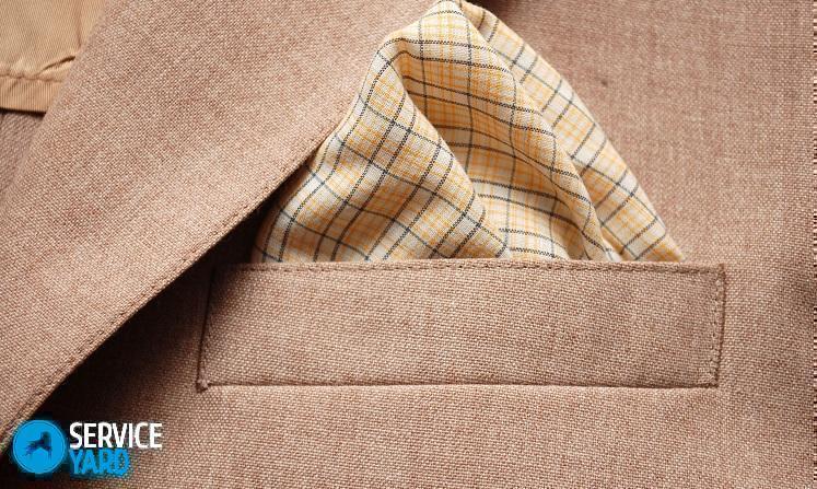 - Coloque cuidadosamente el pañuelo en su bolsillo para que las tres esquinas superiores sean visibles. La cascada desde las esquinas se ve muy bonita.