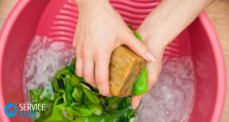 - Prepare una solución de jabón para remojar la ropa, pero antes de esto, frote las áreas afectadas del tejido con jabón doméstico.