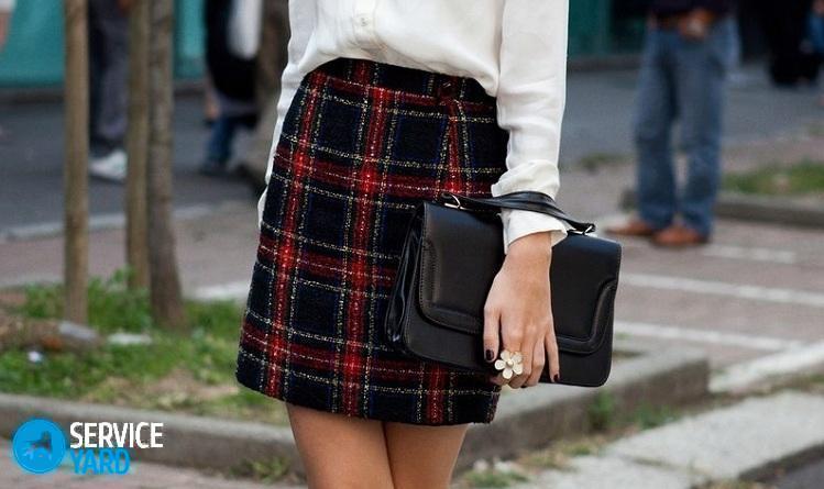 Pero si su hija es una persona ordenada, su atuendo, incluida una falda, se puede decidir en colores pastel claros. El gris plateado o beige más apropiado. En cuanto a la célula, dicho tejido puede ser brillante. Por ejemplo, una combinación perfecta es una falda a cuadros acampanada azul-roja-blanca, una blusa blanca y un chaleco negro.