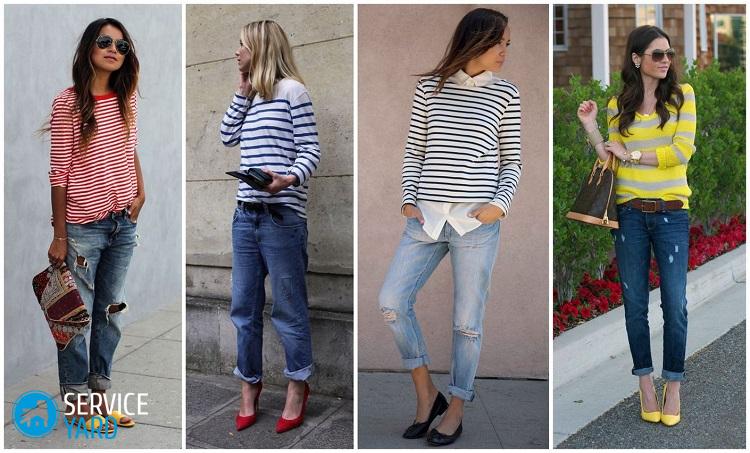 De moda es el estilo de jeans novios con un clásico o ⅞ de longitud. Tienen un alto rellano, corte holgado, solapas, acampanadas, así como todo tipo de elementos decorativos.
