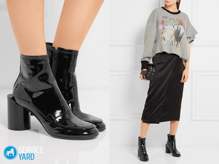 ¿Cómo llevar botas y botines de charol? Estos elegantes zapatos combinan bien con faldas rectas hasta la rodilla o pantalones cortos, vestidos ajustados y sueltos. En otoño y primavera, puedes combinar botines con una gabardina o cárdigan.