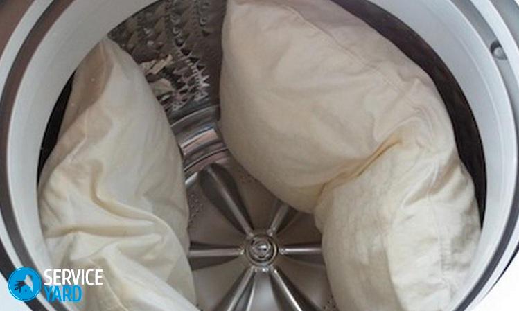 Lavado de almohadas de plumas en una lavadora