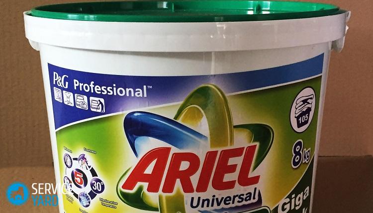 Importante! Al abrir un nuevo paquete de detergentes para ropa Ariel, inmediatamente verá y sentirá las partículas de polvo que se extienden rápidamente por toda la habitación. Tal acción puede conducir a la obstrucción del tracto respiratorio y afectar el bienestar de las personas alérgicas.