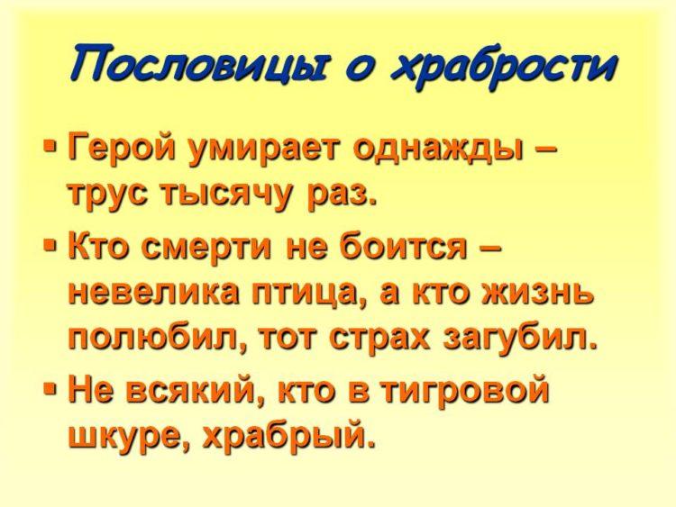 A continuación encontrarás proverbios sobre el coraje y proverbios sobre el heroísmo. Cada uno de ellos tiene su propio significado. Además, para entretener a la clase, es adecuado un acertijo sobre el coraje para los niños. Envuelva todas estas frases sobre el coraje en palabras para explicar a los estudiantes cómo comportarse en la sociedad.