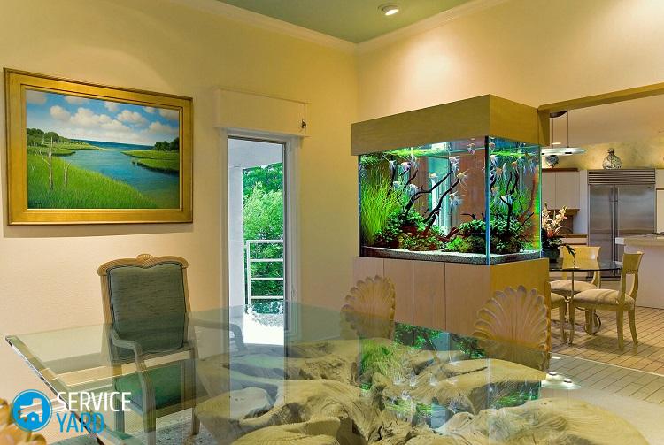 Los sonidos de la música relajante y los peces graciosos flotando lentamente dentro de un "mar" artificial: ¿qué podría ser mejor para la relajación y la sensación de armonía? Aunque el acuario independiente es impresionante y encantador, no se puede comparar con el incorporado. El acuario incorporado ofrece mucho más volumen para peces grandes y pintorescos paisajes acuáticos en el fondo. Hay muchas opciones para organizar un acuario en un apartamento o casa, tanto para fines puramente estéticos como para fines prácticos. Cómo es posible utilizar un acuario favorablemente en un interior: consideraremos ideas interesantes en este artículo.