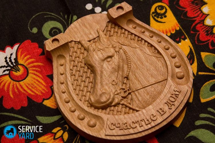 - La herradura, suspendida al revés, protege del mal de ojo, daños, calumnias y otras desgracias. En este caso, se asemeja a una cúpula o un paraguas abierto, a través del cual las desgracias fluyen como gotas de lluvia.