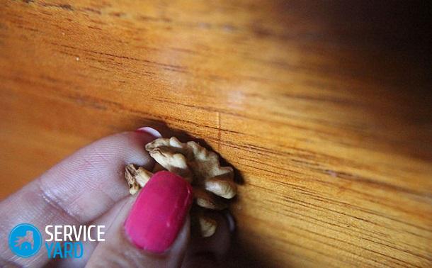 Una opción más efectiva para eliminar las grietas de los muebles es usar nueces. Este producto es adecuado para todo tipo de muebles. Para obtener el resultado: