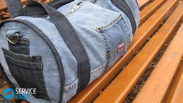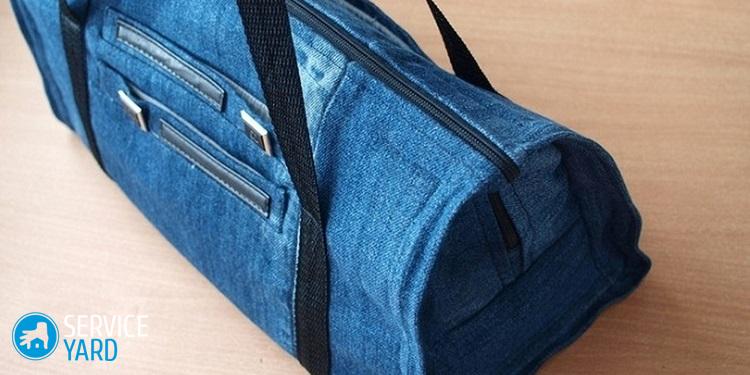 Una de las opciones más populares para hacer jeans es una bolsa. La retícula de moda estará hecha con pantalones estrechos de mujer, y con pantalones de hombre espaciosos, puedes crear una bolsa espaciosa para caminar, un picnic o un accesorio de playa de moda.