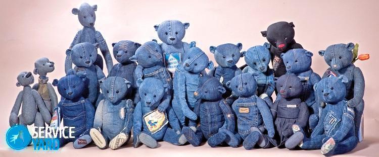 - Juguetes para niños, mascotas. Por ejemplo, puedes hacer una ballena o un oso. Todo depende de tu imaginación. Para un perro, puede enrollar un corte rectangular de jeans en un rollo y atarlo en un nudo.