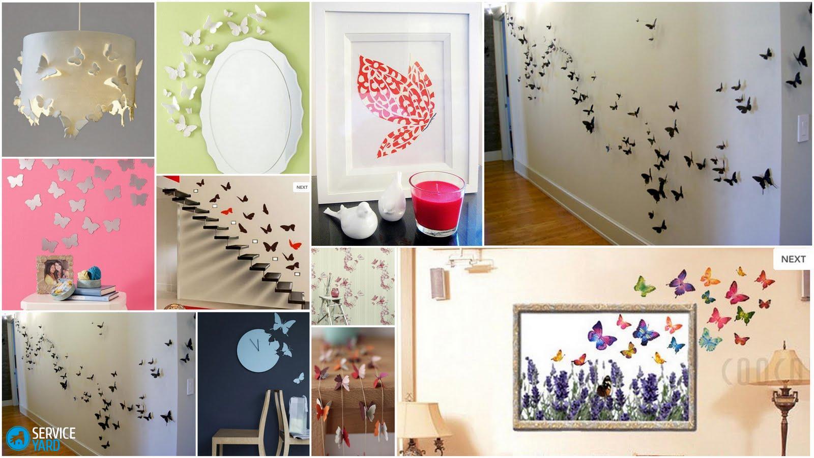 - La decoración de las paredes de la habitación para el niño con mariposas exóticas se ve muy interesante. Córtelos de parches brillantes de enrejado, varios patrones de mariposas de diferentes tamaños e inserte un pequeño espacio en blanco en uno grande. Pegue la mariposa doble y levante las alas. Pegue el elemento de decoración a la pared con pegamento PVA.