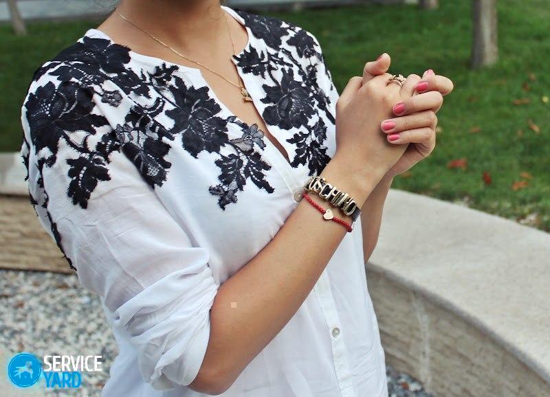Para decorar la ropa con encaje, puede usar cualquier color del material, lo principal es que se ajuste a la sombra del artículo decorado. El material se compra en ferreterías. Dependiendo de lo que decida decorar, debe elegir el tipo correcto de encaje.