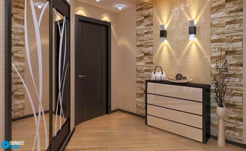 Importante! Si se decidió por este material, elija una superficie mate. Si el corredor es grande, una parte del mismo se puede terminar con azulejos de espejo.