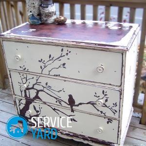 Primero, se aplica un fondo uniforme o texturizado a la superficie de los muebles. Después de que la pintura se seque, puede comenzar a dibujar elementos grandes, pasando suavemente a los detalles finos. Luego la superficie se barniza.