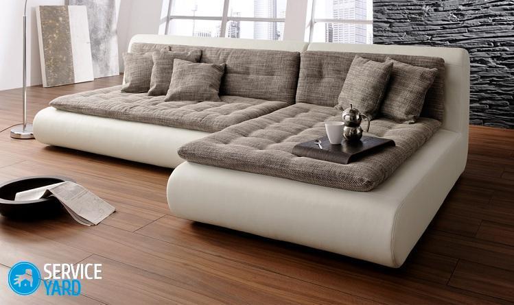 Importante! No hay respaldo en tales sofás; se reemplaza por dos almohadas anchas que simplemente se apoyan contra la pared. Para suavizar la estructura, está equipada con dos gruesos colchones de espuma.