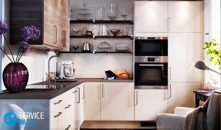 - Es mejor hacer auriculares para tal habitación por encargo, para que los artesanos experimentados puedan usar cada centímetro del área utilizable. Además, dado que no hay mucho espacio libre en la cocina, todos los electrodomésticos también deben ubicarse en las entrañas de los auriculares.