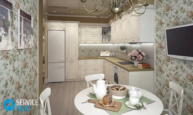 Importante! No pegue papel tapiz en las paredes cerca de la estufa, el fregadero y el resto del área de trabajo. En este caso, use un mosaico clásico.