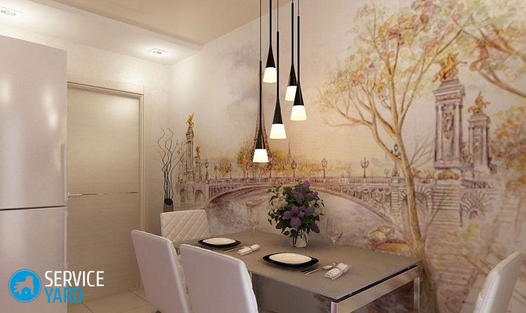 - El mejor método sería dividir en zonas la sala de la cocina y decorar el área del comedor con este tipo de papel tapiz, en cuyo caso ni siquiera necesita barnizarlos especialmente.