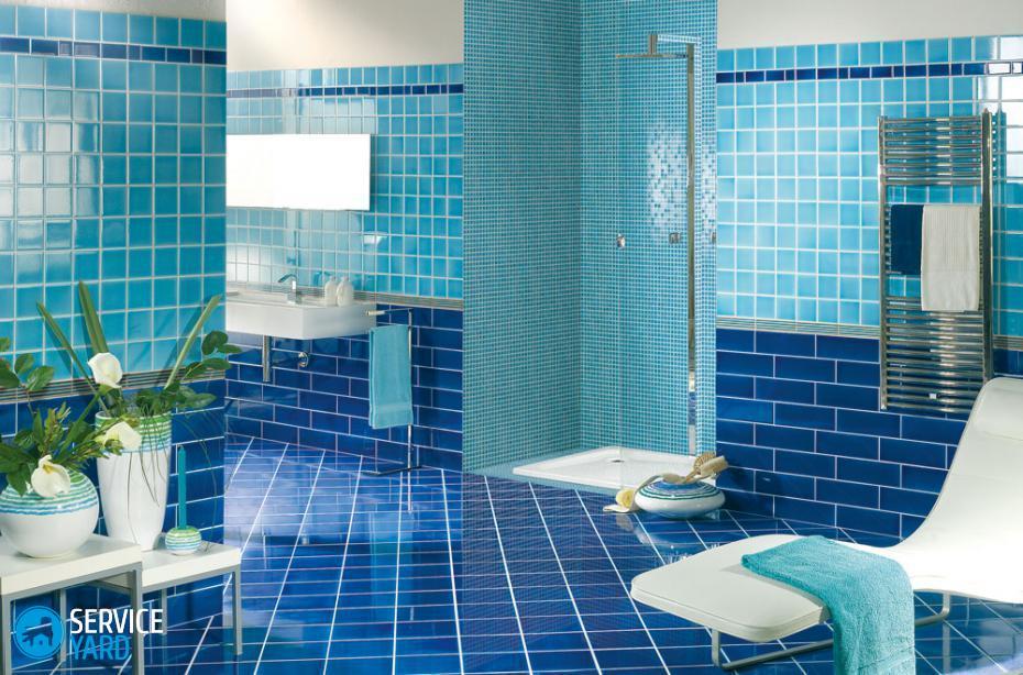 Importante! Para crear un diseño de baño en tonos azules, puede usar baldosas cerámicas de cualquier tamaño, ya que la especificidad de este color le permite no adherirse a la unión tradicional de su tamaño al tamaño de la habitación.
