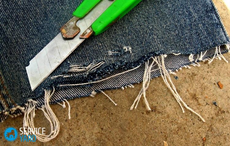 - A continuación, debe desenroscar los jeans y colocar las puntadas paralelas a los hilos de mezclilla.