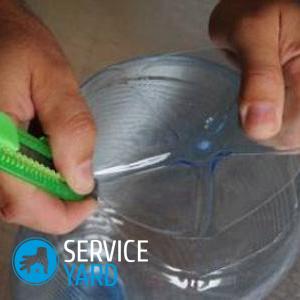 - Tome una botella de plástico vacía de cinco litros, corte las partes superior e inferior en un círculo. Debe obtener un cilindro con las mismas bases de diámetro.