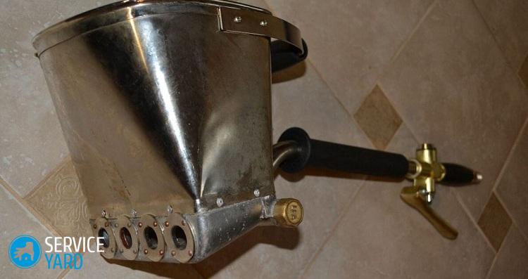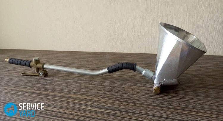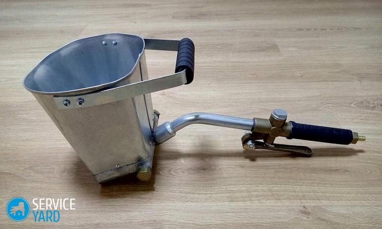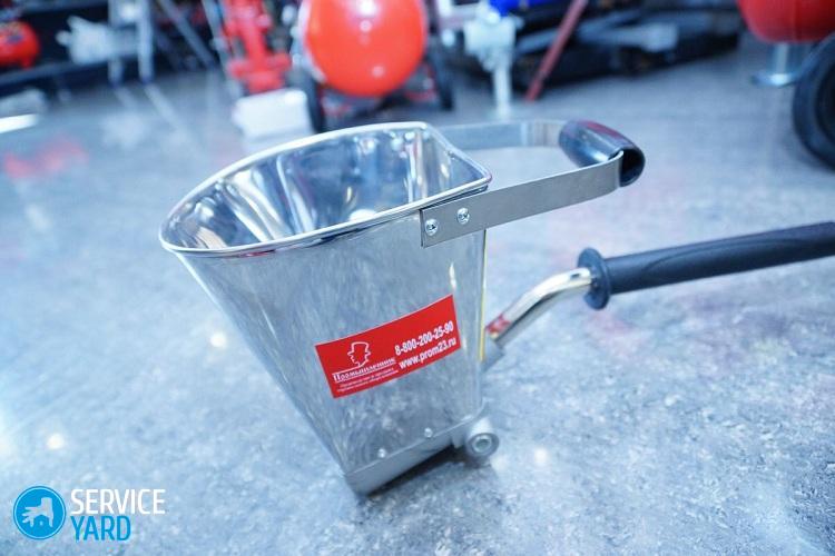 ¿Por qué el dispositivo tiene forma de cubo? Todo es muy simple, ya que toda la solución no se carga inmediatamente en la tolva, debe tomarse de un contenedor común, por ejemplo, de una bandeja. Es más conveniente hacer esto con un balde.