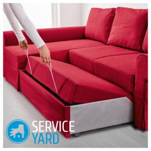 Importante! Para transformar muebles, solo necesita tirar del lazo especial debajo del asiento. Este mecanismo se usa a menudo en sofás de esquina. Este es uno de esos sofás que se presentan hacia adelante.