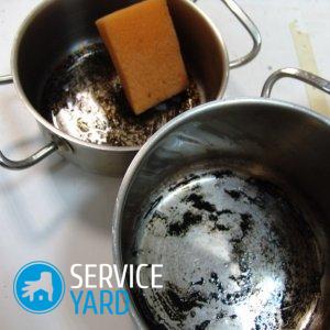 - Se adapta bien a un fondo quemado: una tableta para lavavajillas. Debe colocar una tableta en la sartén, extraer una pequeña cantidad de agua, a unos 2 dedos del fondo, hervir todo durante 20 minutos.