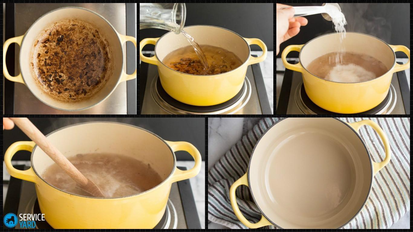 También puede intentar agregar un poco de jugo de limón al refresco y verter lugares quemados en esta composición. Después de una hora, intente eliminar la suciedad con una esponja dura. Este es un método particularmente efectivo para limpiar una sartén de gachas quemadas.