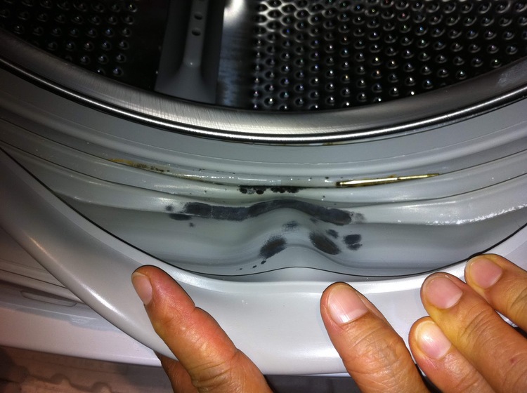 La junta tórica de la puerta es un excelente lugar para el desarrollo de bacterias, ya que el agua y los detergentes permanecen en sus curvas. Para evitar que esto suceda, debe limpiarlo constantemente. Si no se pudo evitar la contaminación y el caucho ya está ennegrecido, puede intentar lavar el sello.
