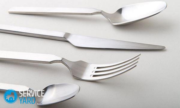 - Recuerde, con el brillo de un tenedor, las cucharas brillaban en una mesa cuando solo tenía dispositivos nuevos. Con el tiempo, se forma una capa oscura sobre ellos, pierden su brillo, se vuelven opacos, poco atractivos. En ferreterías puede comprar líquidos especiales para el cuidado de platos de acero inoxidable, plata, cuproníquel.