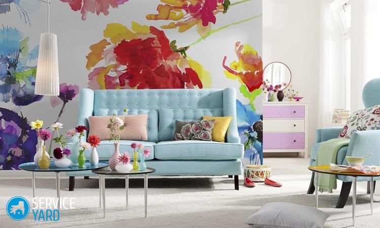 - No coloque muebles altos y voluminosos contra el fondo de murales. Es mejor colocar un sofá bajo o una mesa baja sobre su fondo.