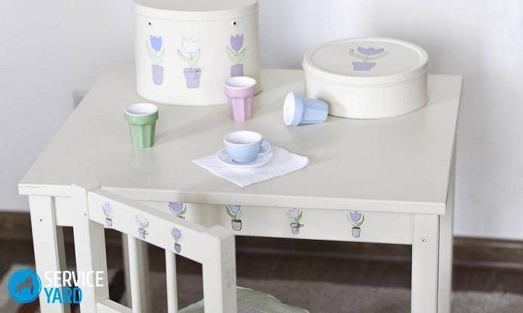 Importante! Decoupage es un diseño decorativo de cualquier elemento al adjuntarle una imagen. A menudo, para esta técnica se utilizan servilletas especiales y cualquier patrón, tela, imágenes, tarjetas de decoupage, papel de decoupage que pueda comprar en cualquier tienda para creatividad. Con su ayuda, puede darle a la mesa antigua un aspecto original y hermoso de manera rápida y sencilla.