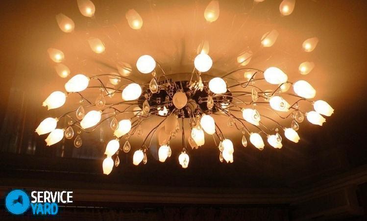 También es importante determinar el tipo de lámpara utilizada. Por lo tanto, los cartuchos de algunos modelos están diseñados exclusivamente para un tipo específico de bombillas, y después de la instalación, el uso de otros no funcionará. Por lo tanto, esto debe tomarse en serio. Al decidir cómo colocar una lámpara de araña en el techo de una placa de yeso, elija la versión correcta del dispositivo.