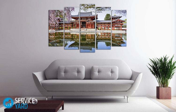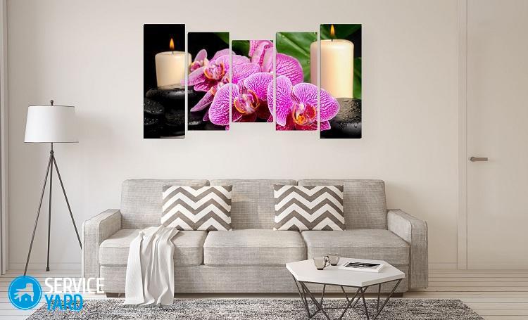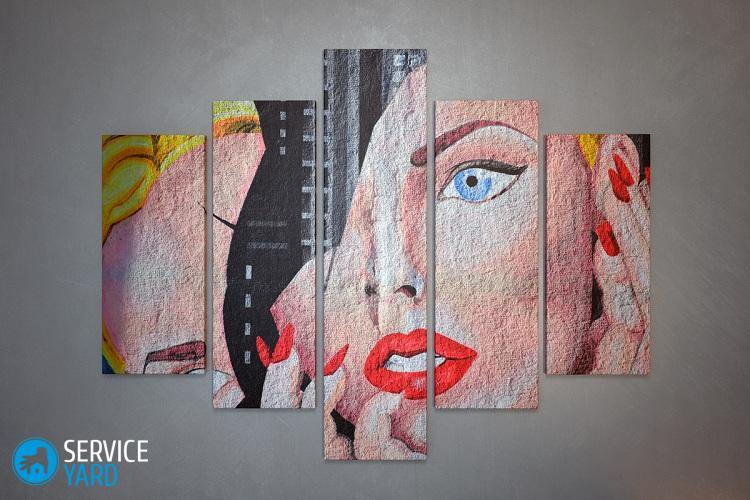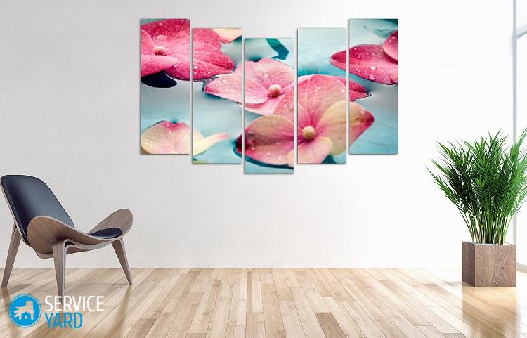 La decoración interior es la parte más fascinante de la reparación. Recientemente, la decoración de habitaciones con pinturas modulares ha sido particularmente popular. Son una composición de dos o más pinturas ubicadas a una distancia relativamente pequeña entre sí. En dicha composición, las pinturas pueden consistir en pinturas sobre un tema o crear una composición única e integral. Hoy hablaremos sobre el pentaptich, o, más simplemente, sobre la imagen modular, que consta de 5 partes. Se debe prestar especial atención a colocar dicha composición en la pared. Después de leer este artículo, aprenderá a colgar una imagen modular de 5 partes en la pared, cuáles son las formas de arreglarlo.