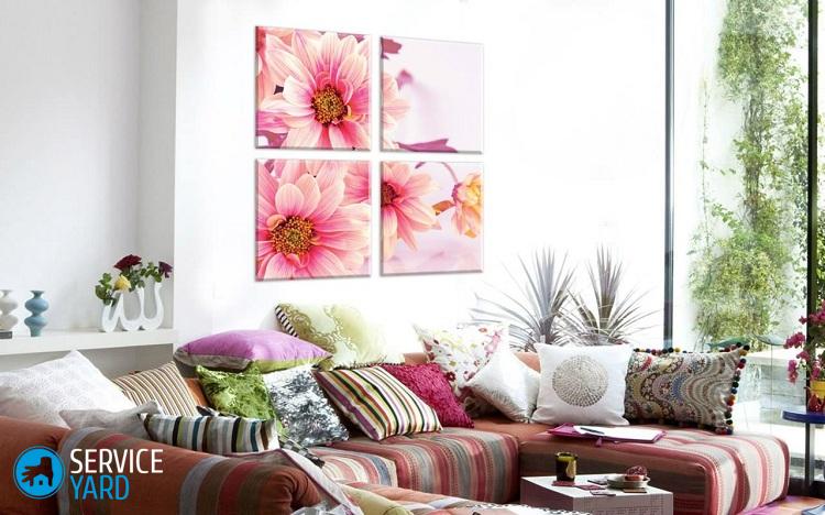 ¿Qué colgar cuadros modulares en la pared, si tienen bastante peso? En este caso, es mejor optar por arreglar imágenes con uñas.