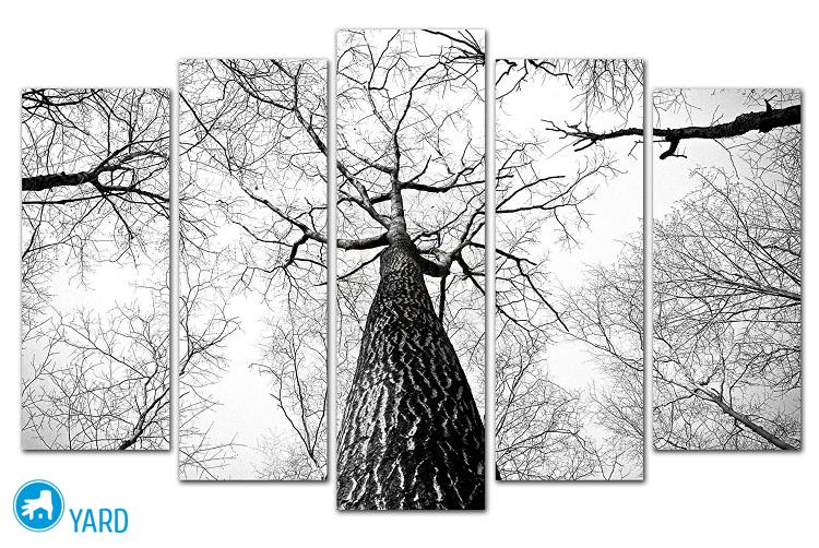 Las pinturas modulares son un dibujo temático único, dividido en partes. Dichas partes se cuelgan entre sí a una pequeña distancia. Pueden consistir en partes idénticas en tamaño y ubicadas en la misma línea. Hay composiciones modulares, cuyos elementos difieren en tamaño entre sí y se cuelgan en la pared en un cierto orden.