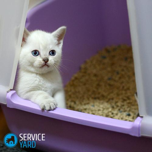 - Ponga suavemente el gatito en la bandeja, tome su pie y levante cuidadosamente el relleno, la naturaleza debería hacerse cargo, y el bebé mismo comprenderá lo que se requiere de él.