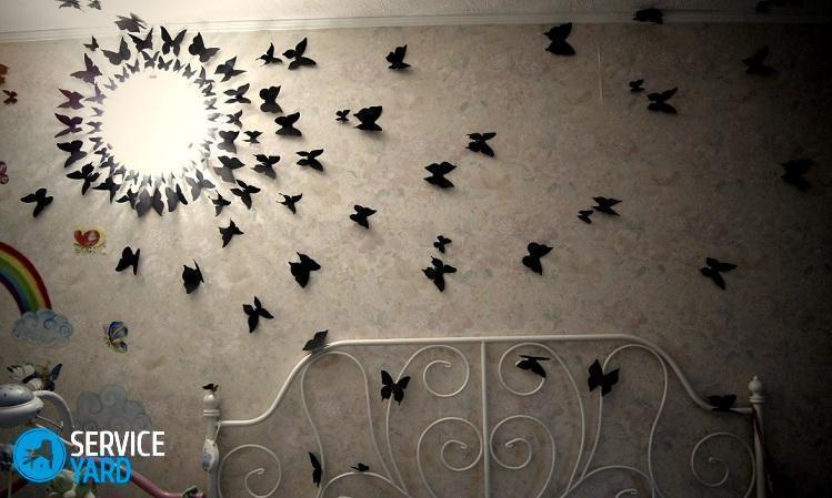 Esta versión de decoración, como mariposas en la pared con sus propias manos, requiere perseverancia, tiempo y un vuelo de imaginación creativa. Sin embargo, si atraviesas todas las etapas de su creación, terminarás con una decoración original y exclusiva de las paredes de la habitación.