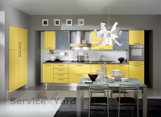 - Lineal Contiene un cierto número de mesas y gabinetes ubicados a lo largo de una pared de la cocina. A veces puede colocar dos auriculares rectos en paredes paralelas, si el área lo permite.