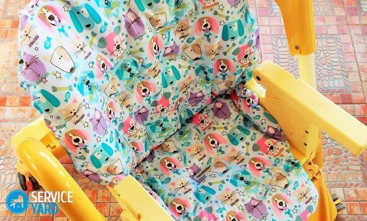 Este método es adecuado para aquellos que tenían un taburete impermeable. La tela rasgada puede dañar al bebé: rascarse, causar irritaciones alérgicas en la piel. Por lo tanto, le recomendamos que no dude en reemplazar la cubierta con una trona. Si se decidió por dicha tela, le sugerimos que se familiarice con las instrucciones paso a paso para coser una funda impermeable.