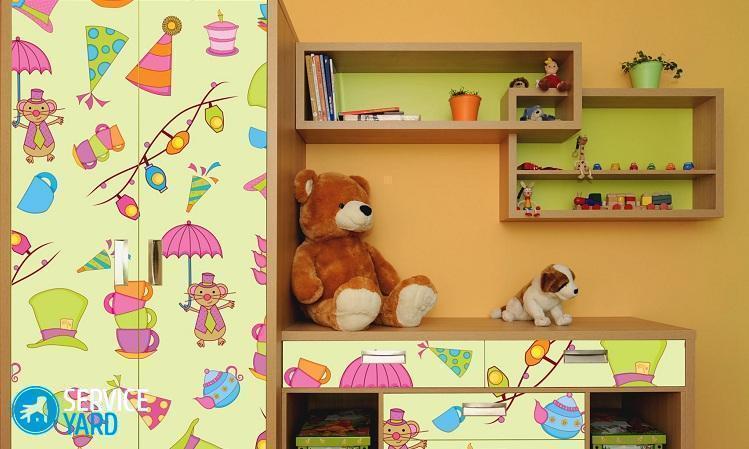 Es mucho más barato pegar el gabinete con papel tapiz, o más bien papel tapiz. Los venden en Internet y en tiendas de construcción. Sus temas pueden ser los más diversos: paisajes, animales, arreglos florales, personajes de cuentos de hadas, personajes de dibujos animados.