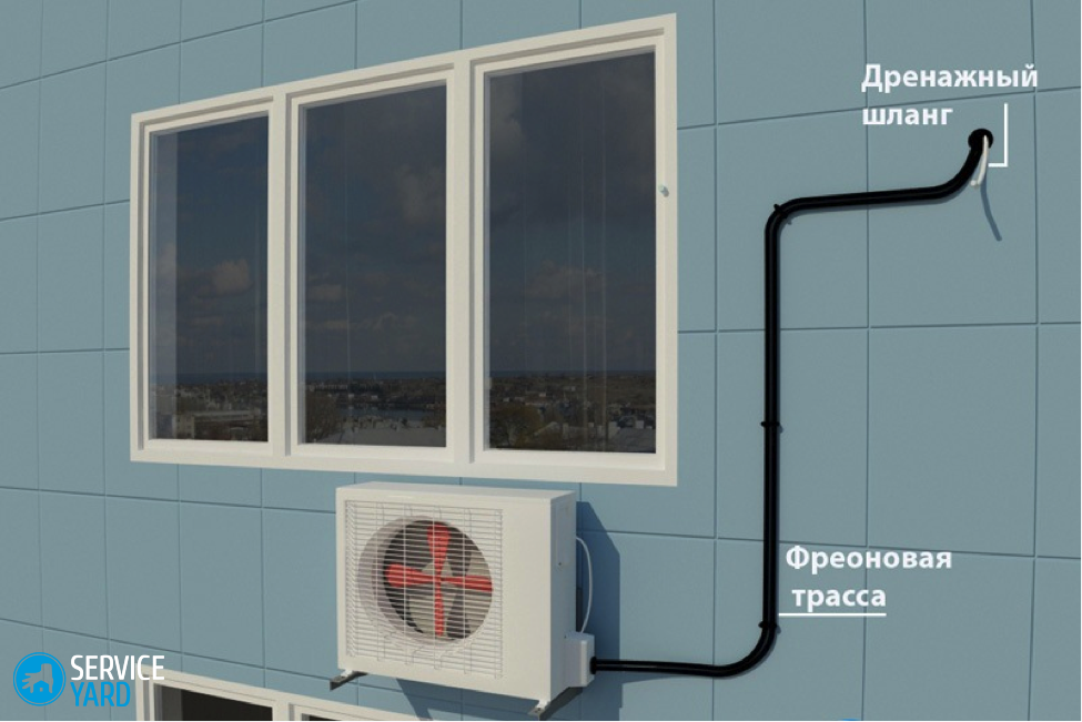 - Es aconsejable instalar una unidad de aire acondicionado externa en una pared soplada por todos los lados, que, al mismo tiempo, está protegida de los efectos negativos de la precipitación.