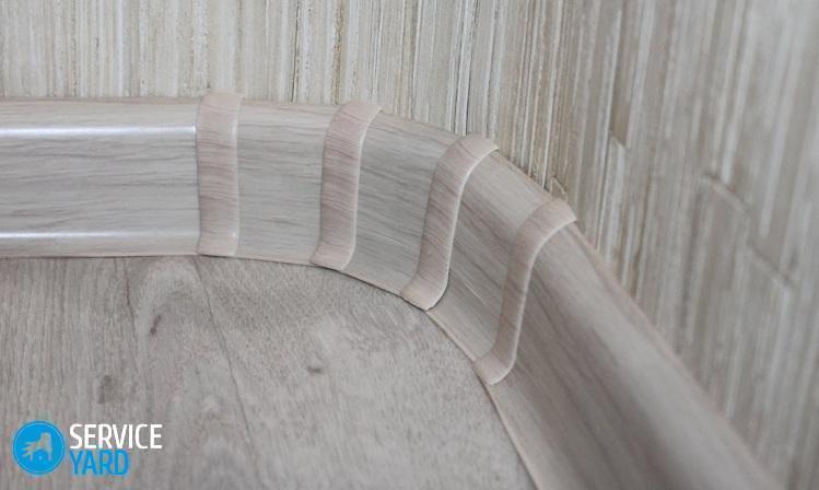 Ahora consideraremos en detalle cómo unir el zócalo al linóleo, cuando necesite ocultar el cableado adicional. Naturalmente, en este caso, se utiliza una versión volumétrica de los listones.